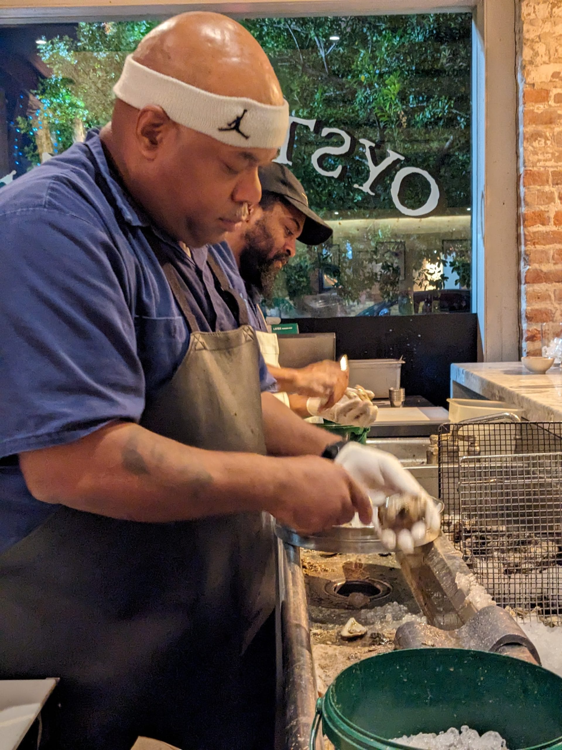 Pêche Seafood Grill – 800 Magazine Street. What a treat! This place was also extremely busy, though they had a seat left at the oyster bar. Why not, right? Pêche’s shucks at least 1,000 oysters a night. While you sit at the bar, Lorenzo and Andrew keep themselves extremely busy shucking oysters of various sizes. It was fascinating watching them work and seeing all the different types of oysters and clams. This night I started off with a wonderful glass of Sangiovese. For my main dish I had the baked drum with mushroom casserole. It’s funny how there are certain foods you’ll only eat in certain places. I’m not a fan of eating fish but I love eating drum fish in New Orleans.